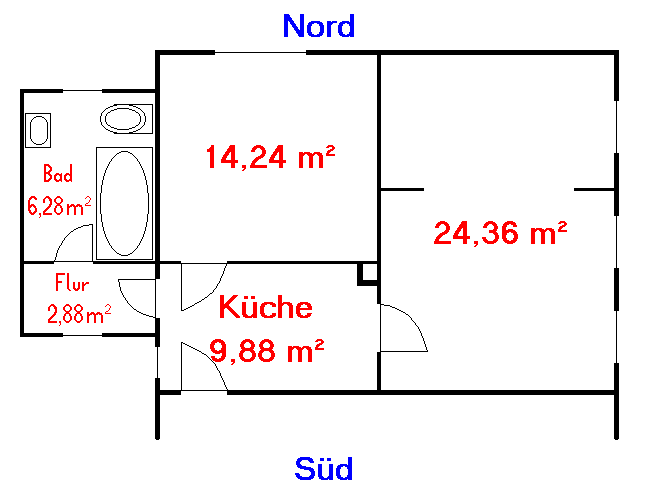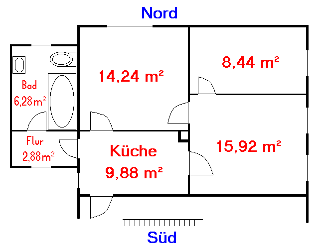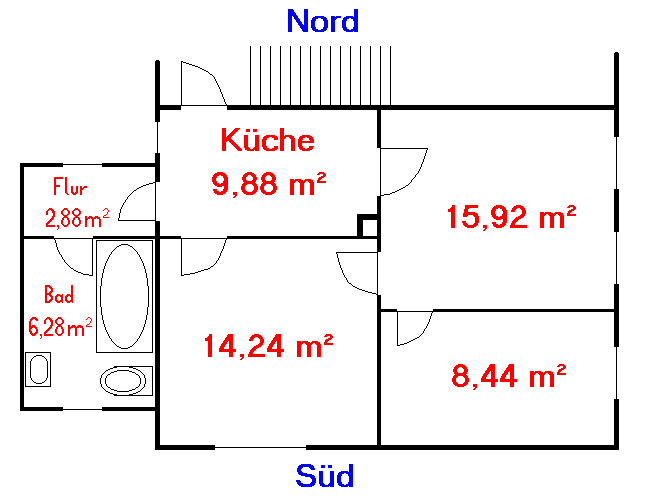 Grundriss der Wohnung Erdgeschoss Süd.